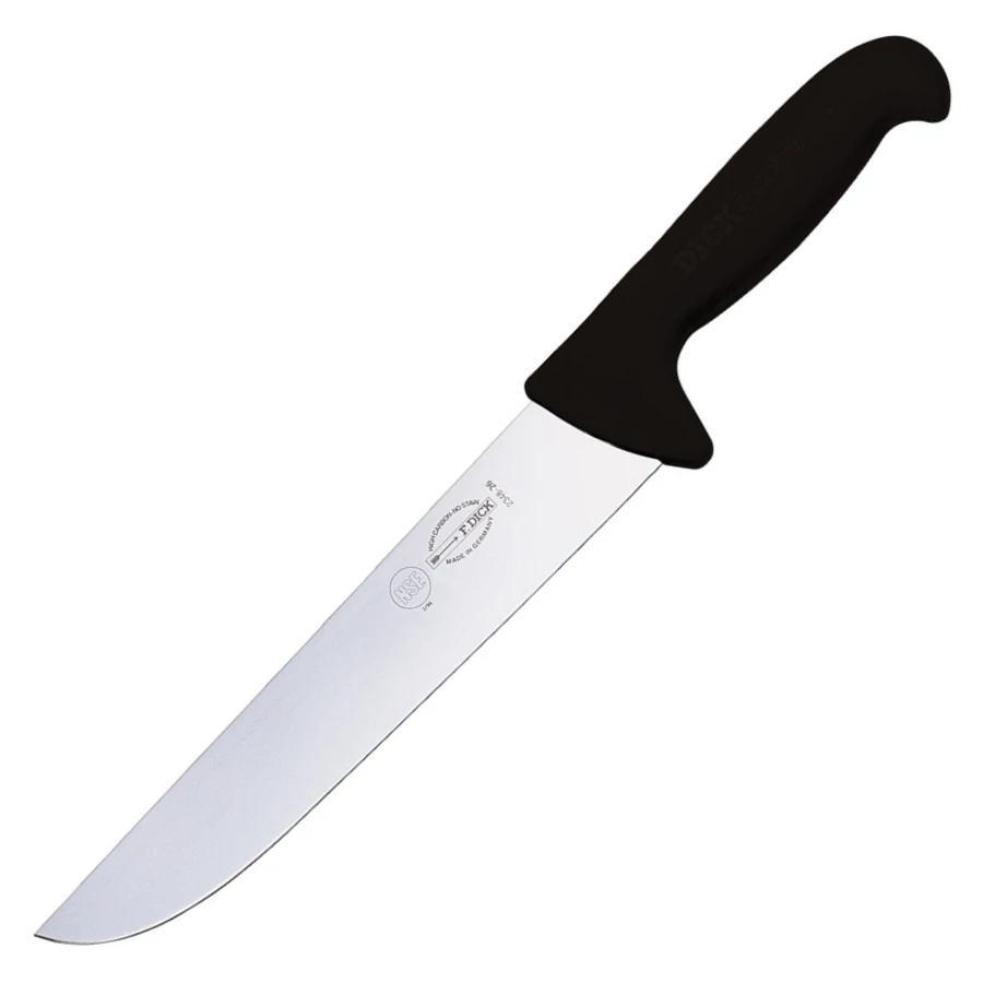 26 cm-es professzionális szeletelő kés (fekete markolattal), mely egyaránt alkalmas professzionális konyhai, hentes illetve húsüzemi felhasználásra is, ugyanakkor természetesen hobby szakácsok és háziasszonyok is előszeretetettel választják világszerte a DICK késeit! Kiválóan használható általános konyhai munkákhoz, szeleteléshez, vagy akár professzionális húsfeldolgozáshoz is. A kés markolata kiváló fogást biztosít, így akár hosszabb távú munkavégzés során is kényelmesen, biztonságosan használható. A németországi DICK vállalat kései és fenőacéljai világszerte híresek kiemelkedő hatékonyságukról és tartósságukról.