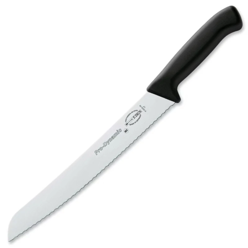 26 cm-es kenyérvágó kés, mely egyaránt alkalmas professzionális nagykonyhai felhasználásra is, ugyanakkor természetesen hobby szakácsok és háziasszonyok is előszeretetettel választják világszerte a DICK késeit! Kiválóan használható általános konyhai munkákhoz, vagy akár professzionális nagykonyhai munkához is, a kés hullámos élkialakítása révén roncsolásmentesen tudja átvágni a legpuhább kenyeret, péksüteményt is, miközben pl. a kenyerek keményebb héja sem jelent számára akadályt. A kés markolata kiváló fogást biztosít, így akár hosszabb távú munkavégzés során is kényelmesen, biztonságosan használható. A németországi DICK vállalat kései és fenőacéljai világszerte híresek kiemelkedő hatékonyságukról és tartósságukról.