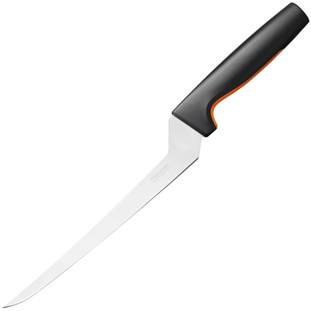 Kiemelkedő ár-érték arányú, 22 cm-es FISKARS FUNCTIONAL FORM filézőkés, mely kiválóan használható halak filézéséhez, hiszen a speciálisan halak filézéséhez kialakított pengeformájának köszönhetően egyszerűen, gyorsan, kiváló eredményt érhetünk el a használatával. A kés ergonomikus, SoftGrip markolata kiváló fogást biztosít, így akár hosszabb távú munkavégzés során is kényelmesen, biztonságosan használható.
